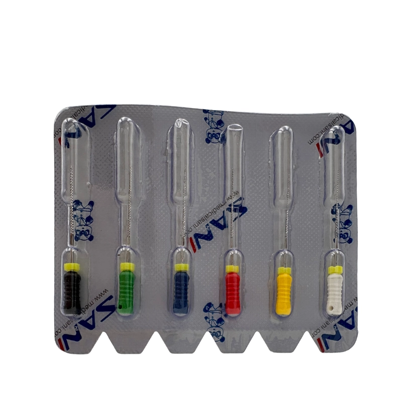 SANI H-File 15-40 Asorti paketi, kök kanal tedavisinde kanalın temizlenmesi, genişletilmesi ve enfekte dentin dokusunun uzaklaştırılması işlemlerinde kullanılan temel boyutları içeren Hedstrom eğe setidir. Paket içerisinde ISO renk kodlarına göre sıralanmış 15, 20, 25, 30, 35 ve 40 numaralı eğelerden birer adet bulunur. Özel medikal paslanmaz çelikten üretilen bu eğeler, keskin spiral yapıları sayesinde yüksek kesim verimliliği sağlar